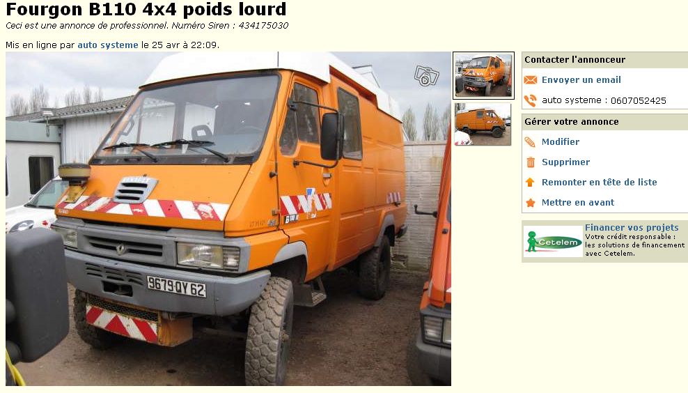 Fourgon renault B110 4x4 4500 kg de ptac