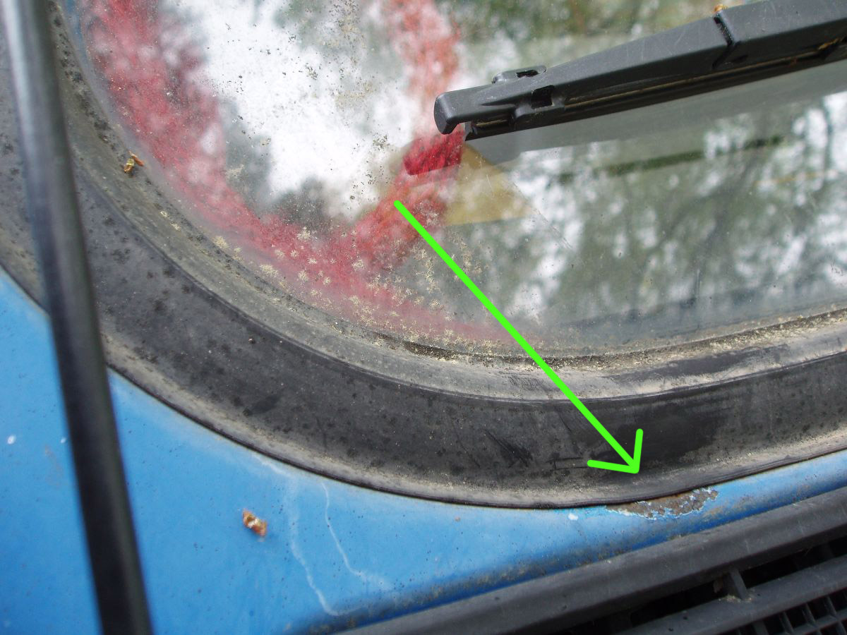 - Dans le même genre, les coins inférieurs du montant du pare-brise :
