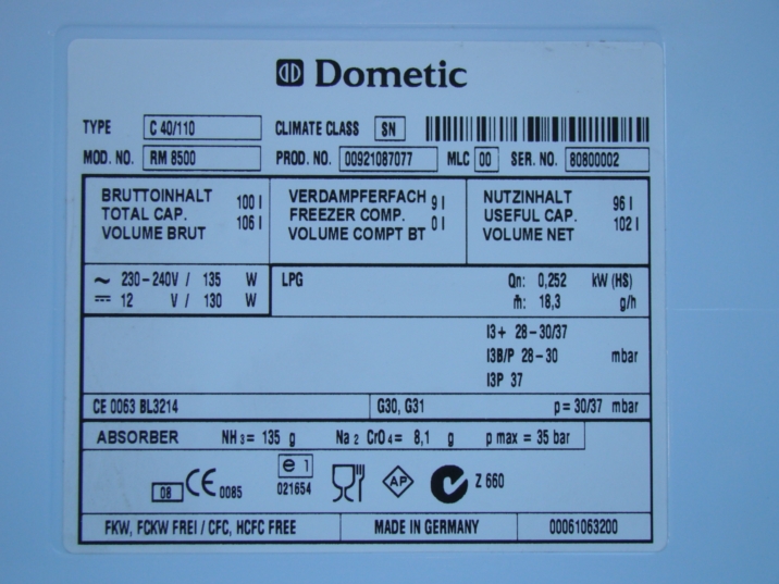 [Vendu] REFRIGERATEUR DOMETIC RM 8500 106 litres quasi neuf
