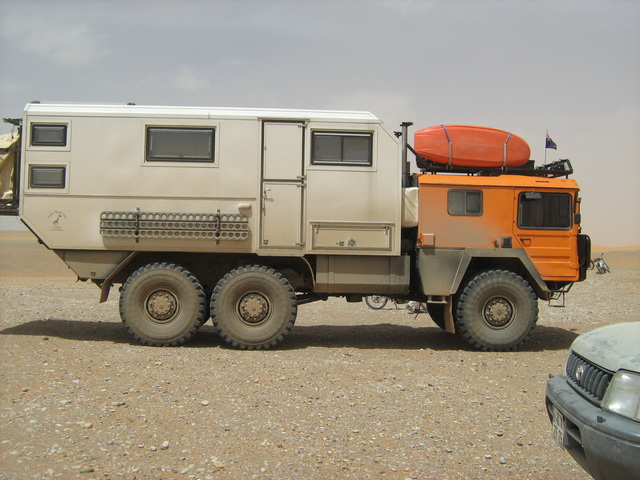 Statt des Zweiachsers setzt man auf einen 8x8 M1002, der in seinem bisherigen Leben z.B. als Militär-Transporter z.B. für Raketen im Einsatz war. Besonderheit: Bei dem neuen Truck sitzt der Motor nicht hinter dem Fahrerhaus, sondern im Heck. Ebenfalls intéressant: Bei den Kollegen von [ http://www.lkw-allrad.de ] konnte und kann man den Umbau des Lkw im Forum verfolgen.