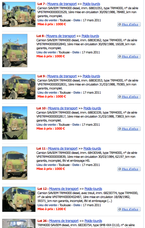 Ce sera un grosse vente domaniale, énormément de lots trm2000/4000, Iveco, Brutt, Berliet ....