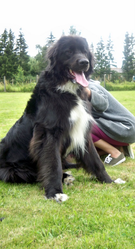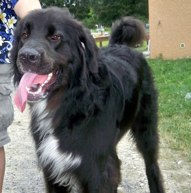 C'est un croisement père Léo et mère Landseer, d' après les personnes qui s'occupent de l'asso qui replace les géants abandonnés il est très gentil et très sociable