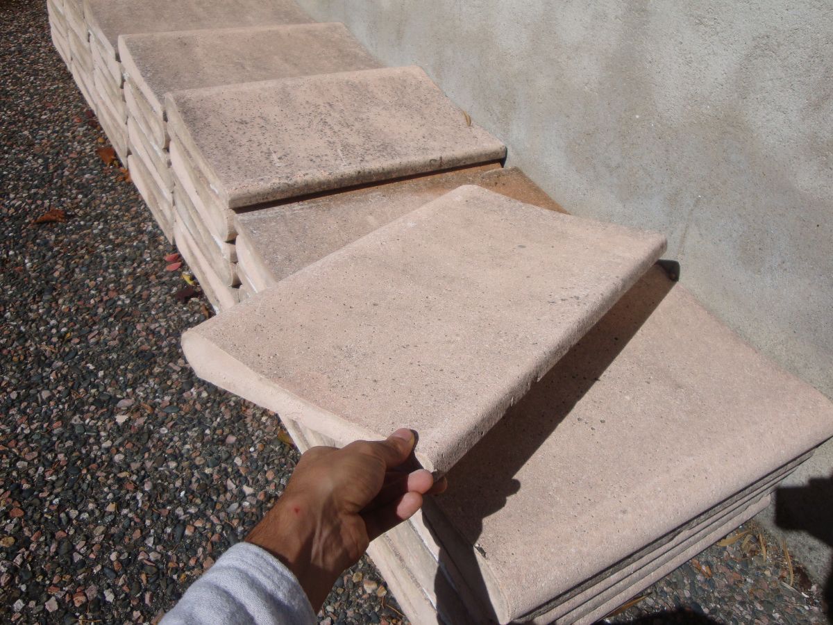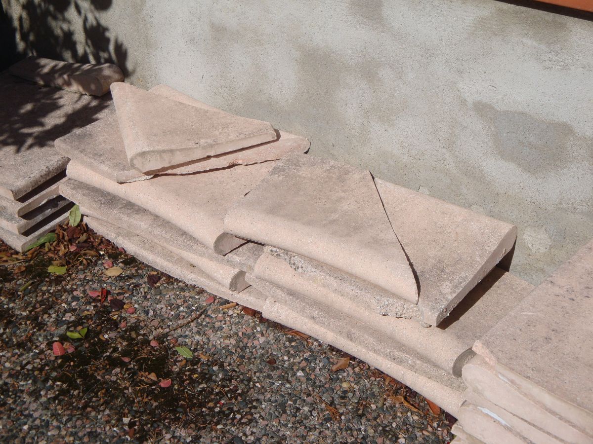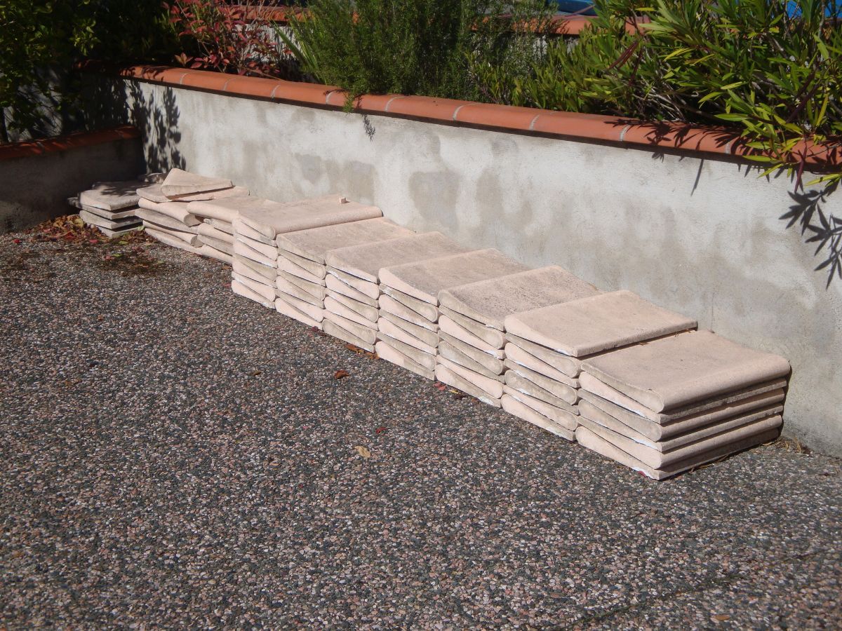 Je ne sais pas si ça peut intéresser quelqu'un mais mon père à démonté les margelles de la piscine de sa maison, elles sont en bon état, il les a enlevées pour cause de changement de projet, finalement il veut mettre du bois qui arrive jusqu'au bord de l'eau.