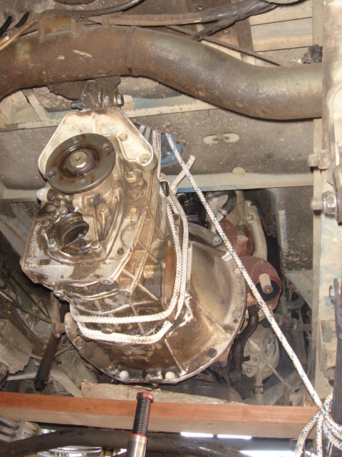 C'est cool pour remonter la boite de vitesse, 4 poulies, un bout de corde et hop. Réglage de la butée : n'ayant pas vu de dispositif pour rappeler la fourchette qui pousse la butée (aucun ressort à l'intérieur ni à l'extérieur sur la tringlerie) le simple poids de la pédale fait que la butée va rester collée. Intrigué je suis allé demander à un mécano de Renault Trucks qui connait bien les "B" et qui a confirmé. La butée tourne donc sans arrêt, il faut juste régler la tringlerie pour limiter le jeu au maxi (pour avoir la pédale haute) sans toutefois exercer de pression sur le diaphragme.