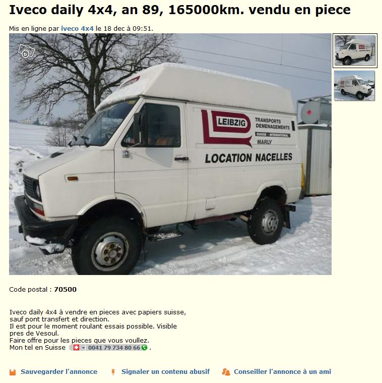 - ↳ Annonces IVECO 4x4 Turbo Daily