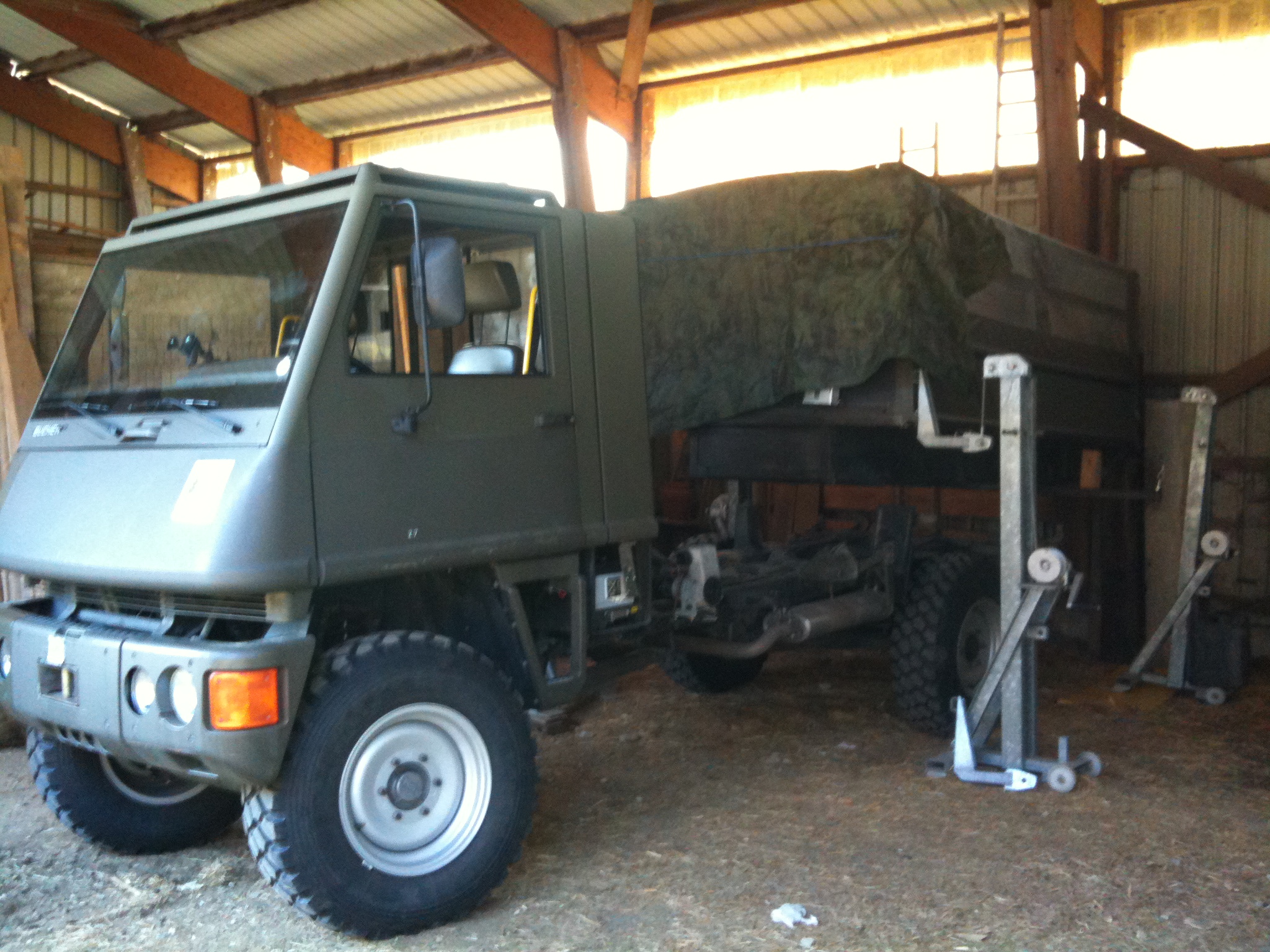 Un Bucher Duro 4x4L 1999, ex armée. Et croyez-moi, j'ai déjà eu mon lot d'aventures en si peux de temps avec la bête.