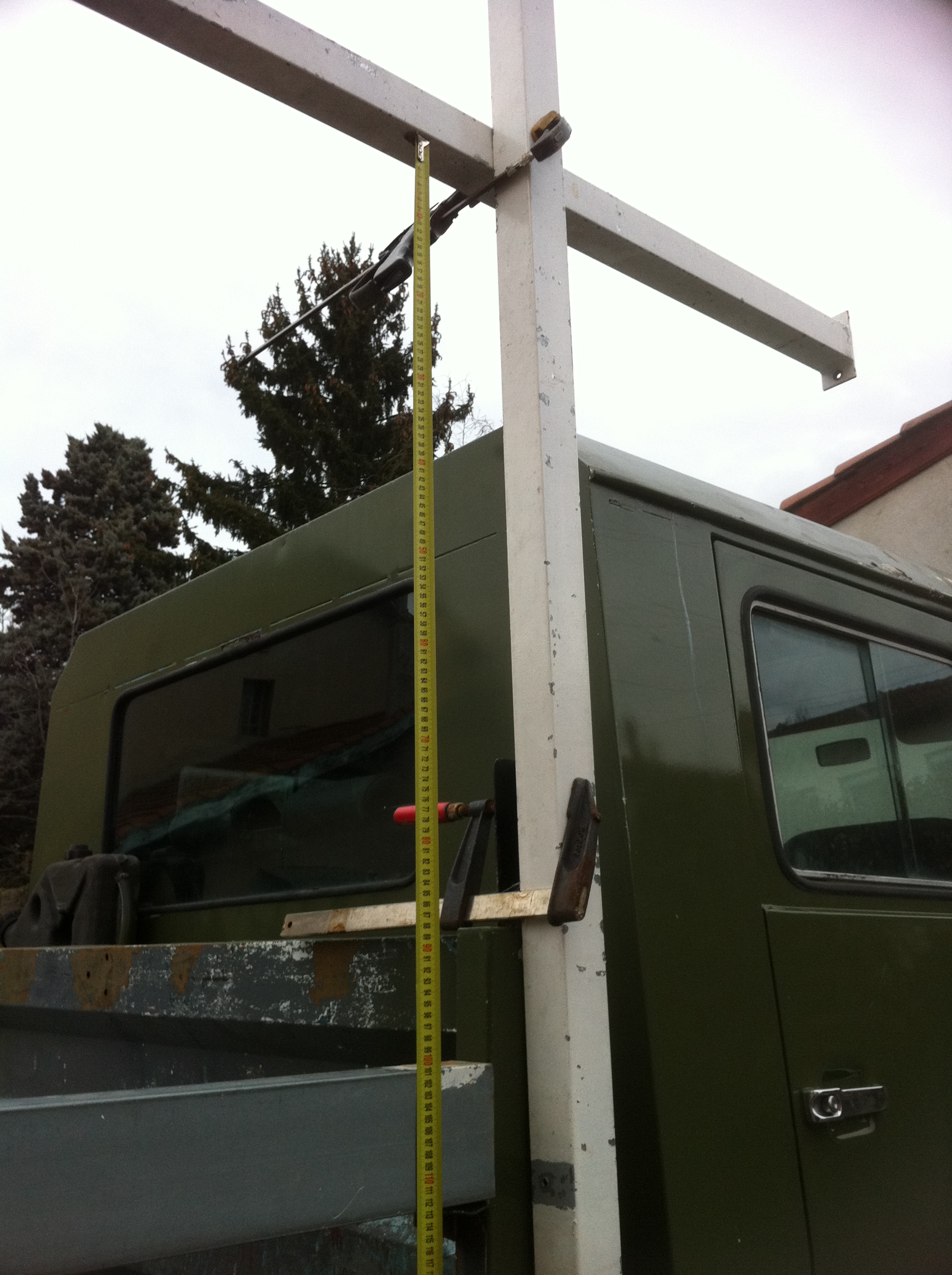 Voici une petite simulation de montage de la cellule , si mon cadre est juste au dessus des ridelles ce qui permet le max de chargement et l'accès aux plateau , ça me laisse 20cm entre la capucine et le toit de la cabine du brutt.... je crois que je vais prendre cette option.