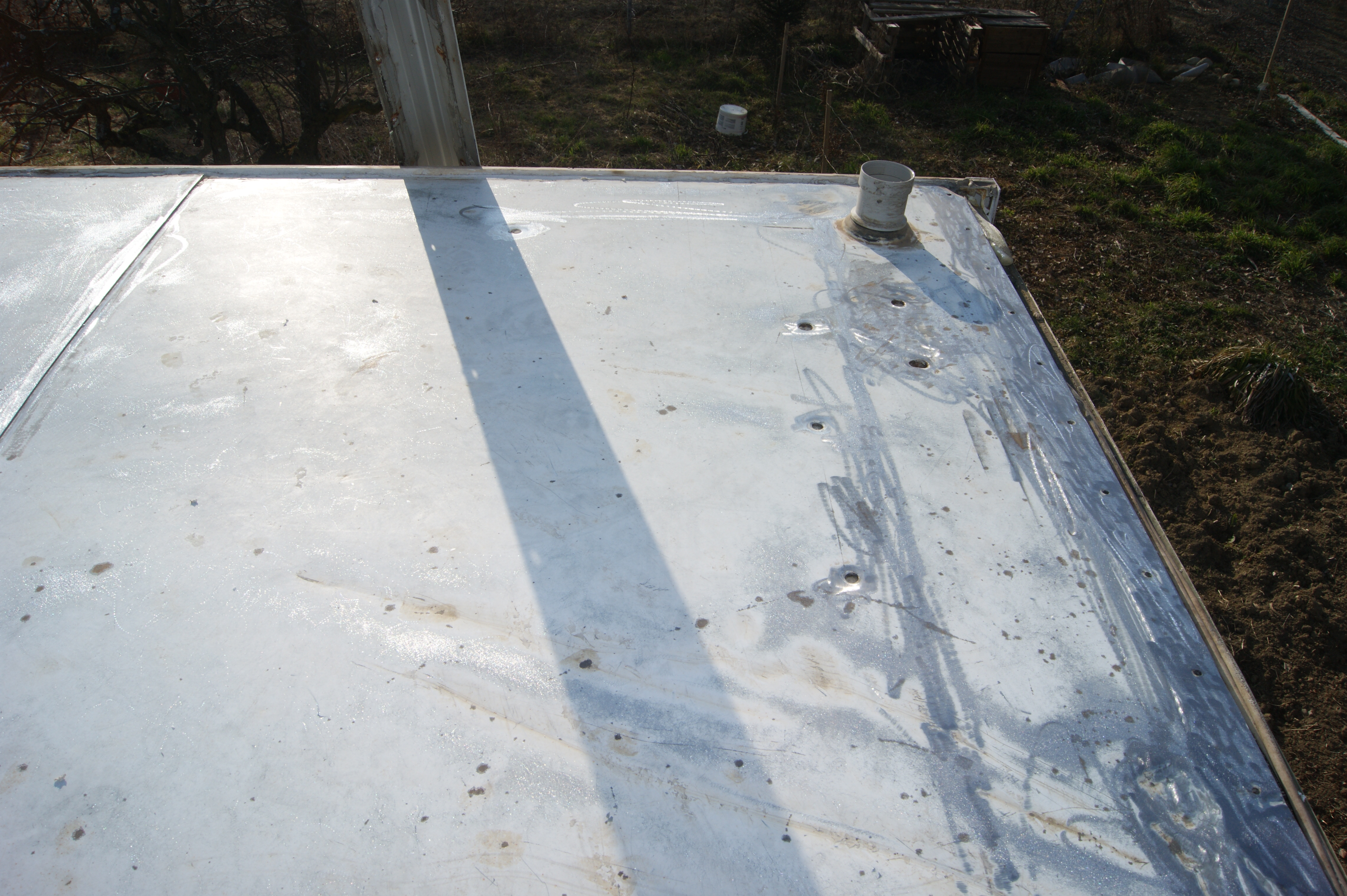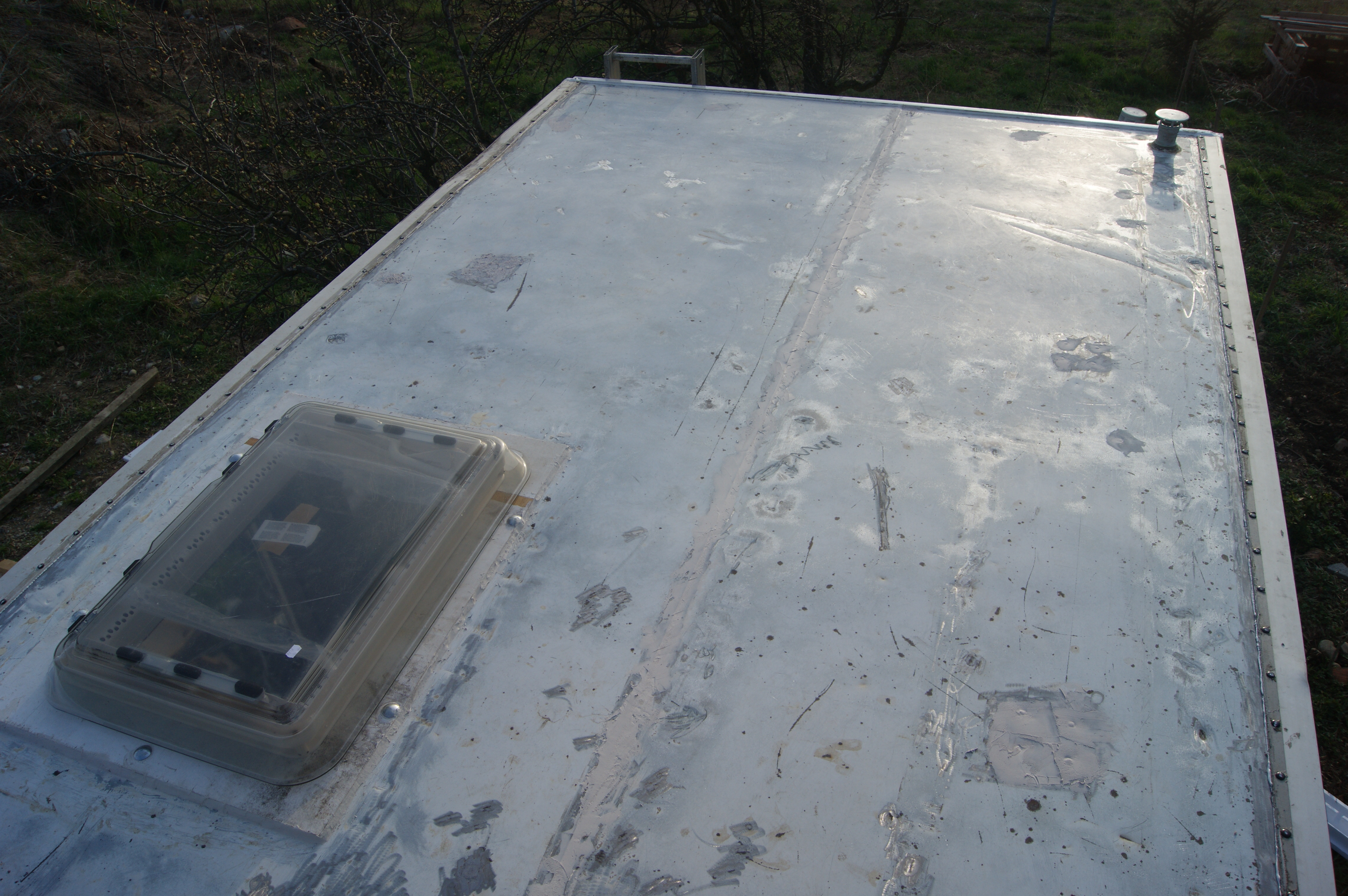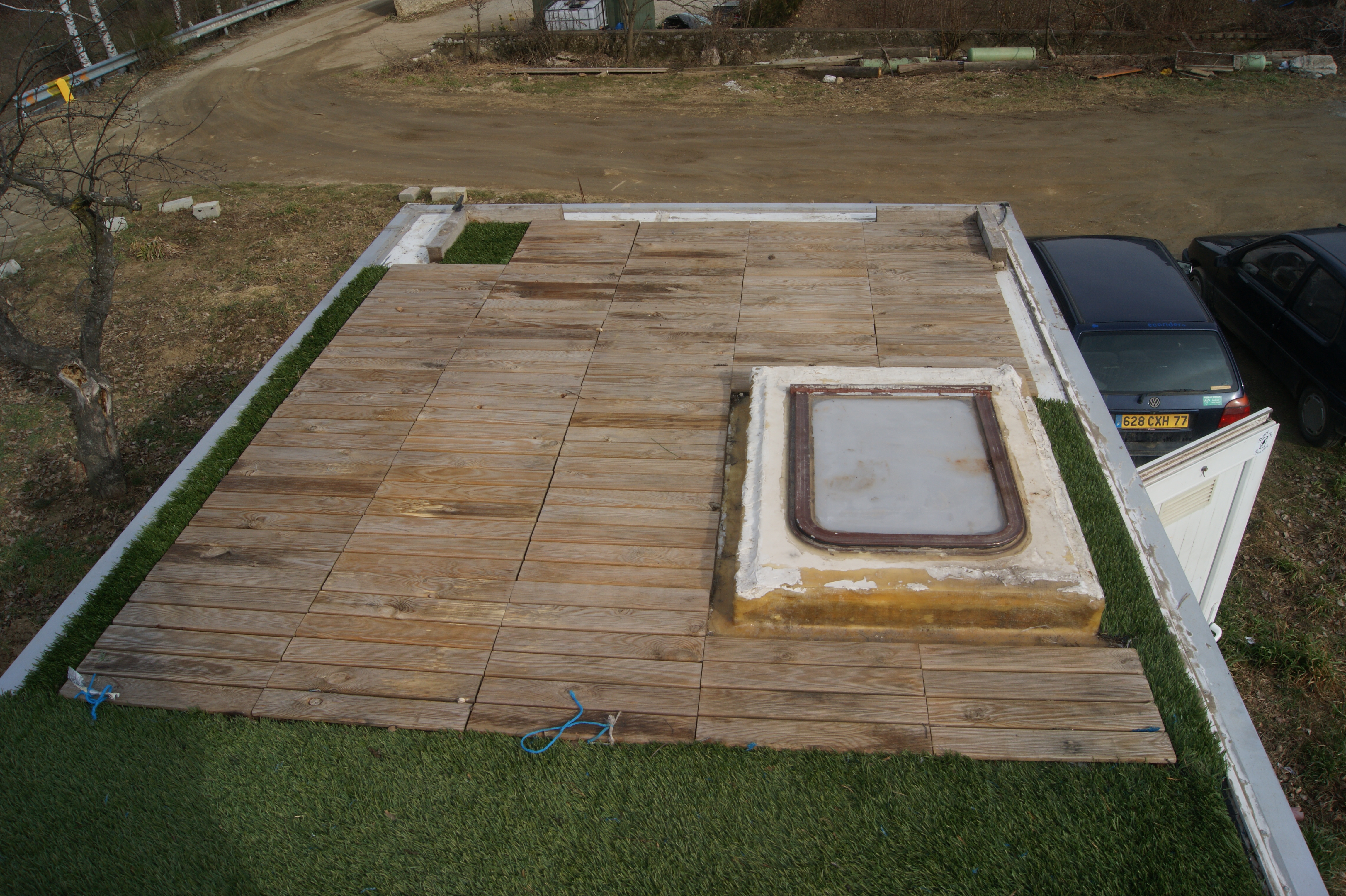 le toit moitié terrasse moitié jardin avec la tente 2'' prévu pour rentrer directement dans la tente par le lanterneau, mais quelques fuites m obligent a tout décaper, mais je les remettrais après