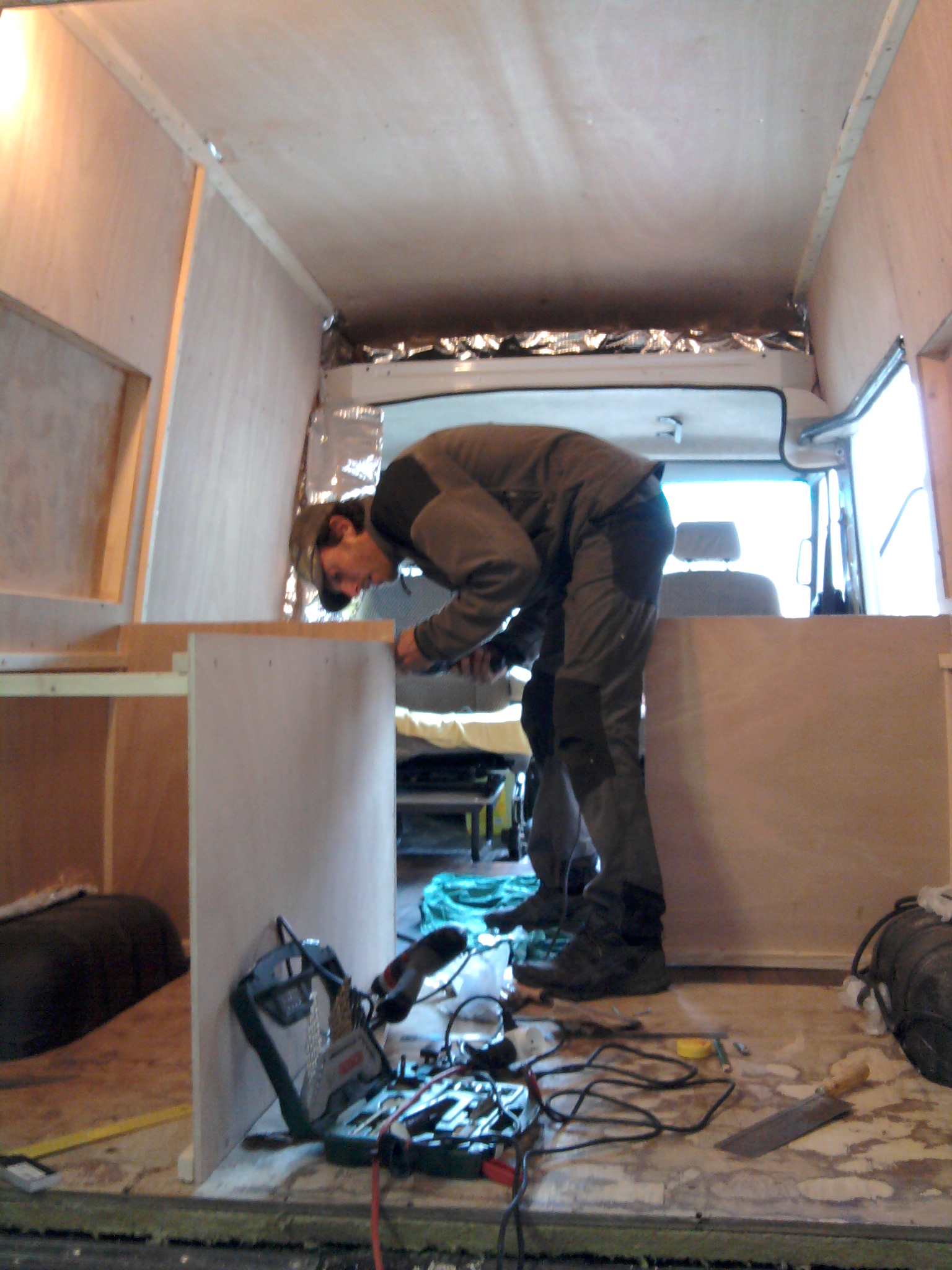 Bon, depuis le 9 mai, on a un peu avancé puisqu on a fini l isolation du plancher et de la caisse et le lit est aussi terminé! ( photos ci-dessous)