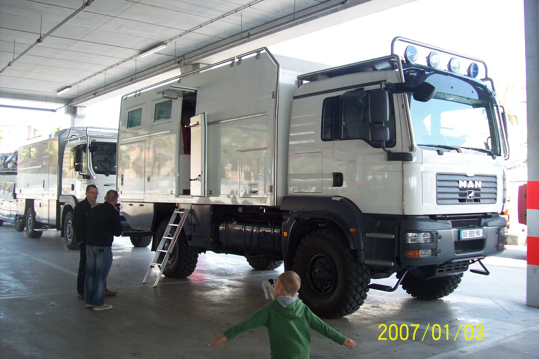 Qqs tofs des Man croisés sur le port de Barcelone. Qss jrs plus tard nous nous sommes retrouvés à coté de Chegaga pour jouer dans les dunettes. Ca marche assez bien le Man malgré un très gros poids et un moteur assez modeste (290 Cv).