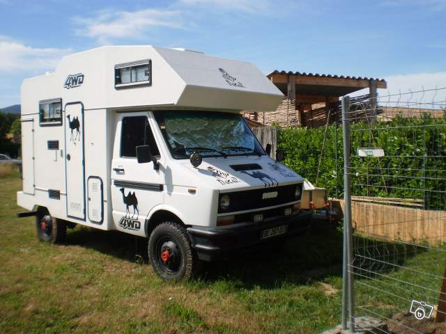 Vend ou échange camping car Iveco turbo diesel année 1990 , compteur 270 000km moteur 165 000km Rare en France 4x4 . Avec blocage de différentiel . Poids Lourd passé aux mines homologué camping car . Série limitée cellule Clémenceau 5 places , carte grise , 5 couchages , tout équipé , salle de bain avec WC , réservoir d'eau 200 litres , TV écran plat avec antenne numérique , avec cb + une cb portable , poste radio pionner , moquette , douchette extérieure , cellule coque moulue = pas d'infiltration d'eau , bonne isolation pour ski . Et d'autres options . Révisé entièrement chez concessionnaire Iveco avec toutes les factures de suivi et d'entretien . Préférence pour échange trike family ou can am speeder sur la base de 18 000€ ou 15 000€ à la vente. Contactez moi sur mon portable merci 0662239010. Je ne suis pas souvent sur internet mon travail ne me le permet pas. Plus de photos sur demande .