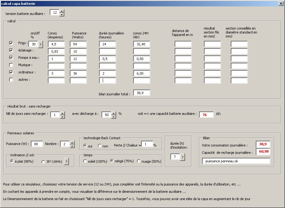 Donc la puissance "réelle" du panneau est de : 5,06 x Tension de batterie