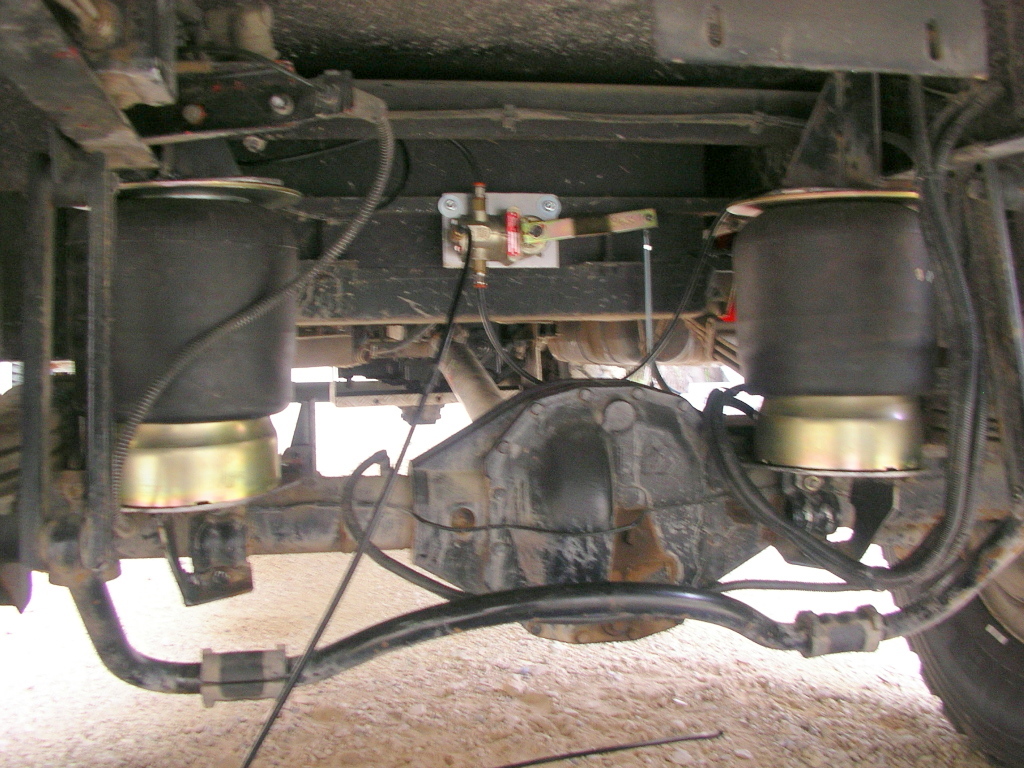 J'ai egalement monté une valve de nivellement, qui permet de maintenir automatiquement une assiete constante ,quelle que soit la charge ,et deux electros independants pour pouvoir modifier ,au bivoac, l'inclinaison du vevicule ,eventuellement en cas de besoin.