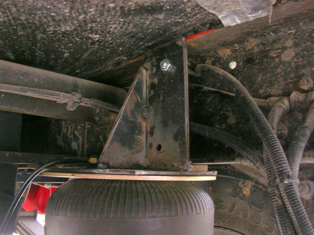 Sur l'arriere ça n'a pas été evident, car j'ai du confectionner des ferrures assez complexes,d'autant que dans mon cahier des charges j'ai voulu que l'ensemble de pièces , soient montables et demontables ,sans aucunes soudures sur le châssis ou sur le pont ,d'une part sans modifier la suspenssion d'origine, et d'autre part, pour pouvoir demonter rapidement cette adaptation en cas de besoin (casse....bien que les coussins sont largement surdimentionnés,Bien entendu faute de place ,j'ai du supprimer les butées de pont d'origines (je les emporte en voyage)mais les coussins en sont pouvus)