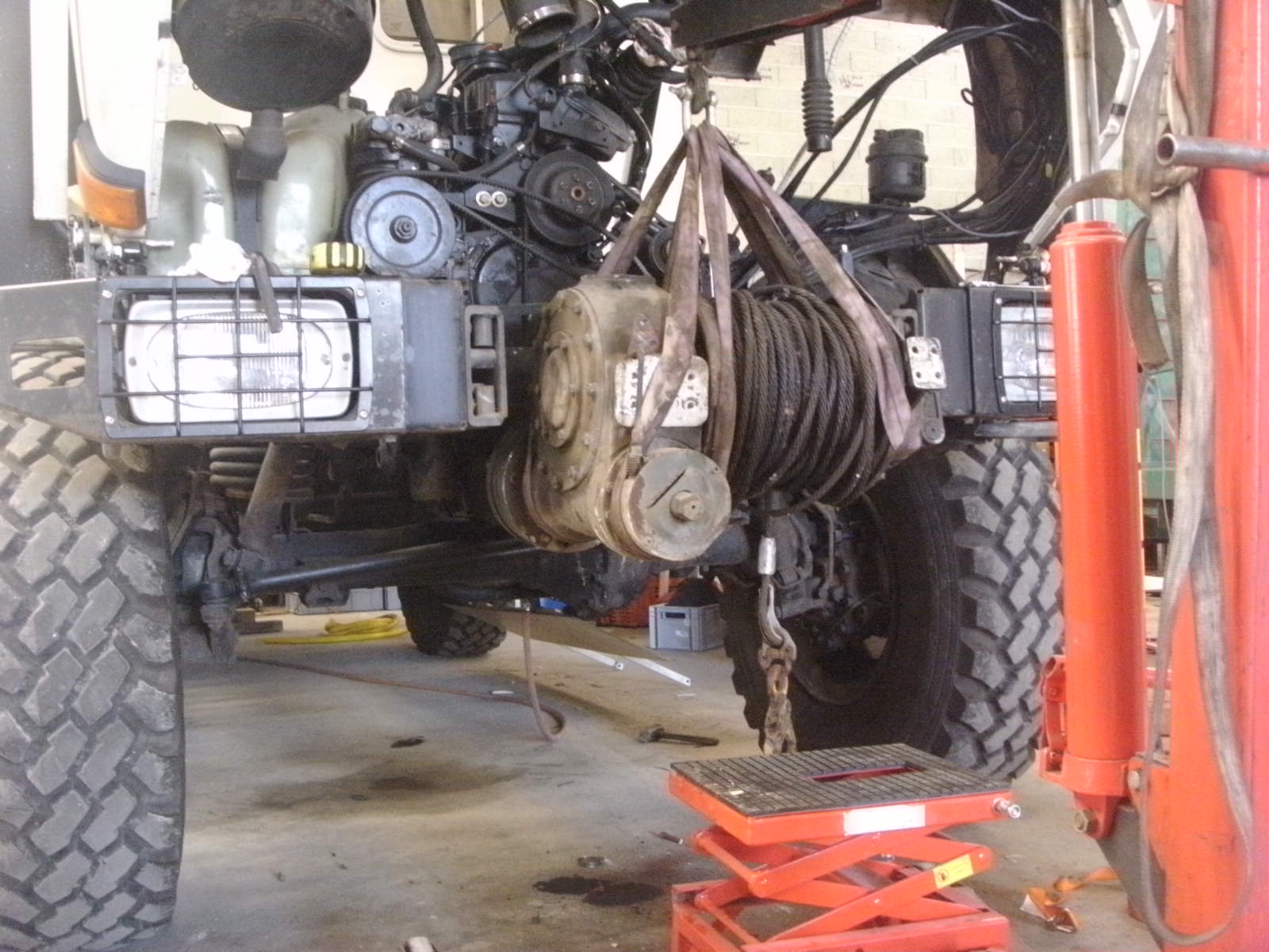 j'ai terminé l'installation du treuil sur mon Unimog 2150