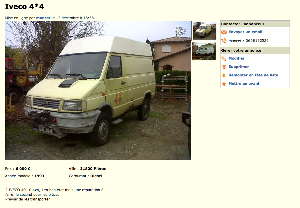 - ↳ Annonces de véhicules 4x4 (vans et camions) et pièces détachées aussi.