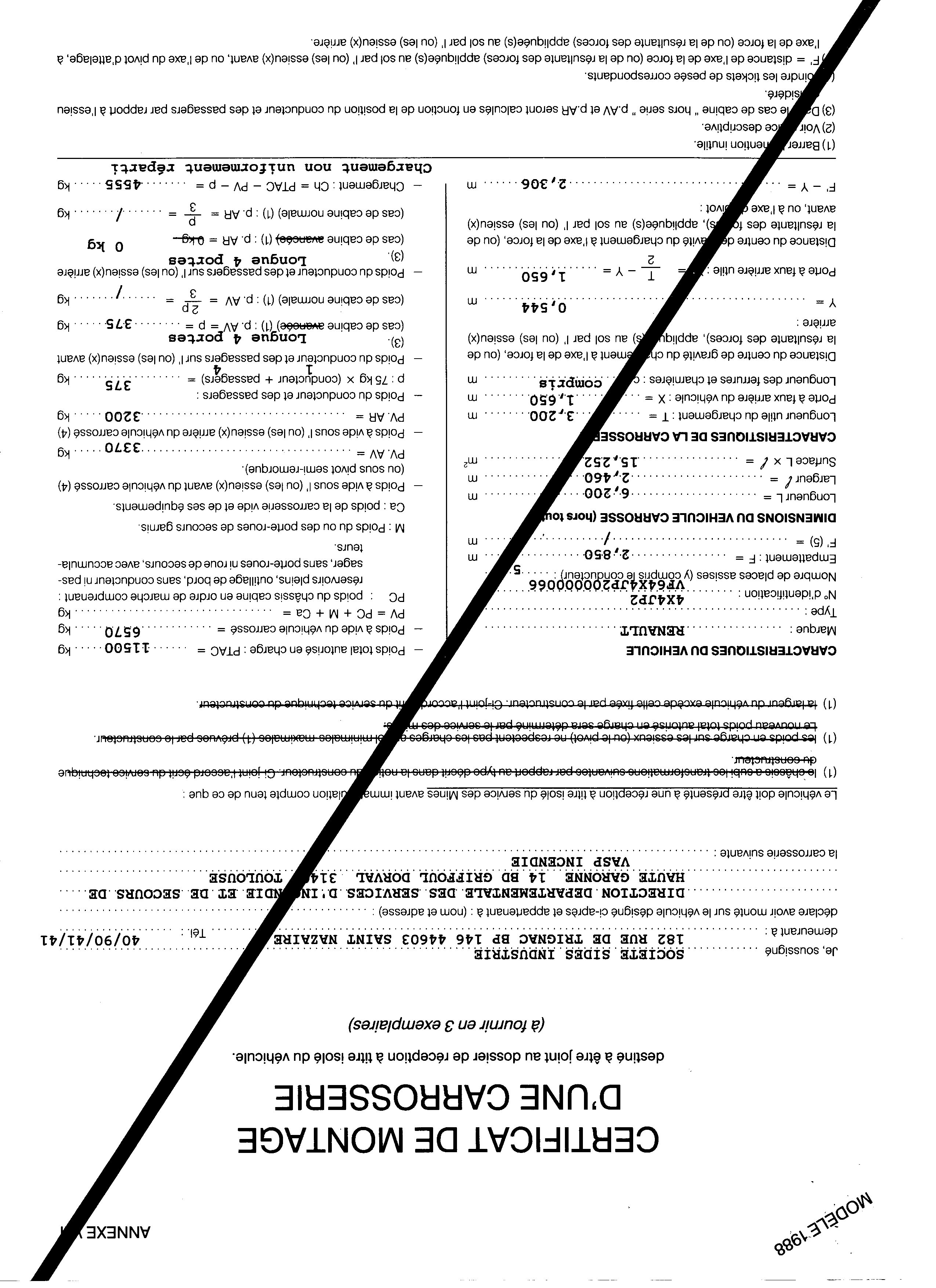 Bon la c'est un certificat de carrossage de chez SIDES, d'ailleurs ton camion (ça vient du tiens?) est sorti 22 exemplaires plus tard que le mien.
