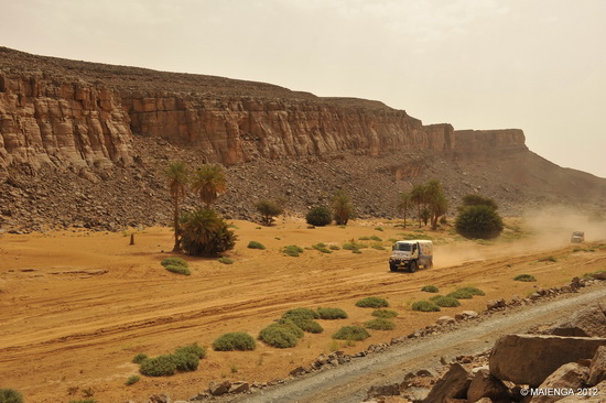 Le retour vers le nouveau bivouac passera à proximité de Taourirt Timlaline, la «montagne de la Gazelle» pour aller traverser un oued fort sableux pouvant se montrer un véritable piège … prudence donc car la fatigue aidant, il est fort à parier que des gazelles puissent se rendre compte qu’un ensablement n’est pas forcement l’exclusivité des grandes dunes de la veille. Et si l’arrivée à El Fecht est sans doute signe d’une nuit « moins calme », elle sera sans doute aussi synonyme d’un bon repas à la chaleur et la convivialité du bivouac.