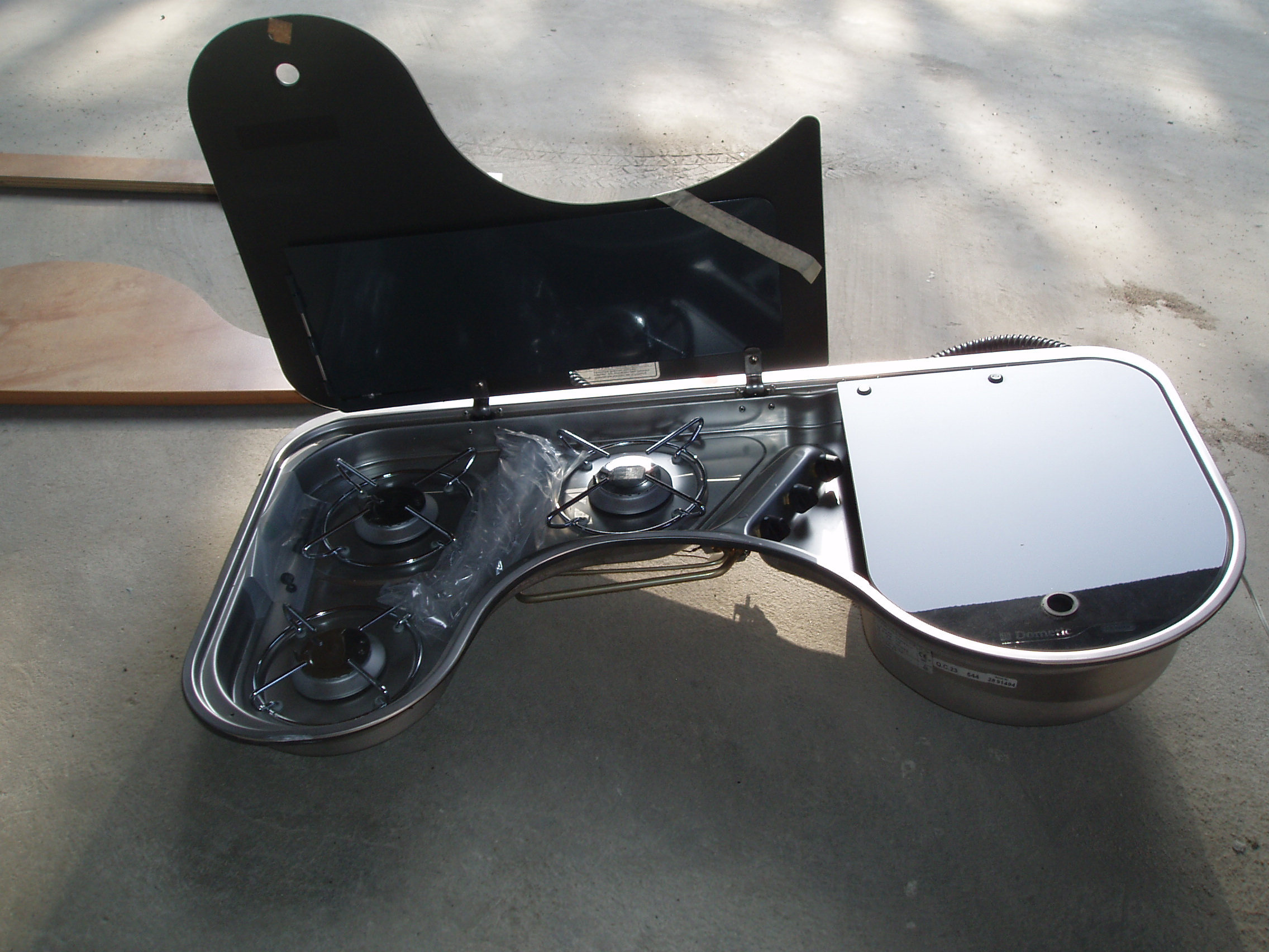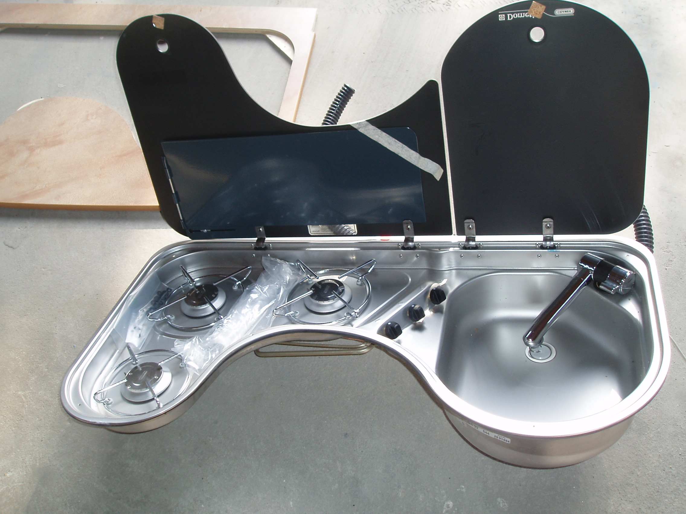 Je vends un combiné évier/ gaz de marque Dometic Cramer avec évier et robinet plus 3 feux gaz avec protection par couvercles séparés neuf !