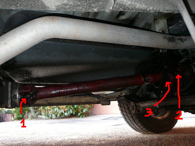 Je n'ai trouvé que 3 graisseurs sur ma transmission, tous sur le cardan intermediare entre la boit de vitesse et le visco-coupleur: 1 à chaque croisillon et un sur le tube pour lubrifier l'emanchement coulissant. Rien sur l'enorme arbre de transmission entre le visco-coupleur et le pont arrière.