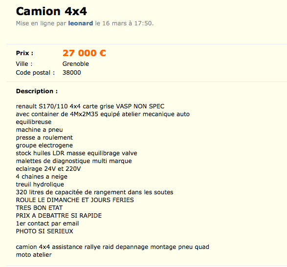 mais dis donc ça serai pas le camion de bruno toy38, qui le vends en douce??? :roll: