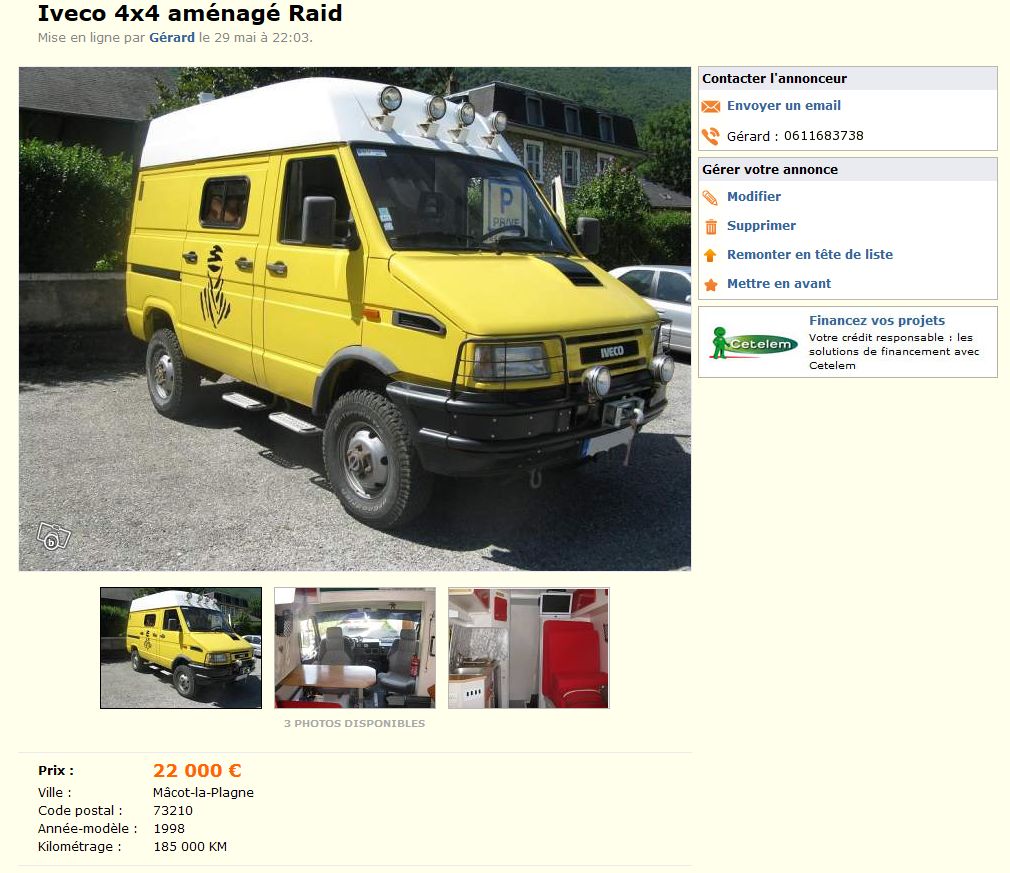 Re: iveco 4x4 aménagé camping car185.000km 22,000e