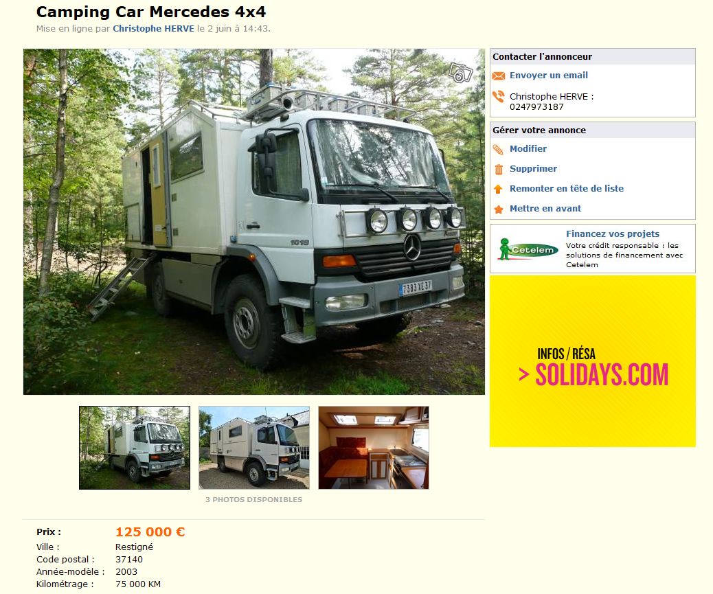 Suite à abandon de notre projet de voyage "tour du monde", nous nous séparons de notre camion camping car 4x4 sur base Mercedes.