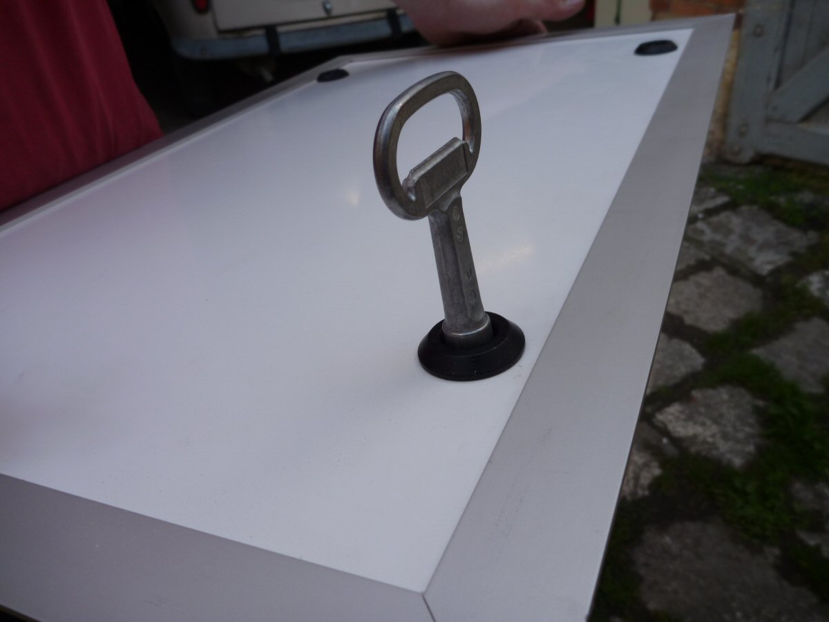 La plaque au sol sera verrouillée avec des quart de tour à clef carrée je mettrais des photos lors de la mise en place...