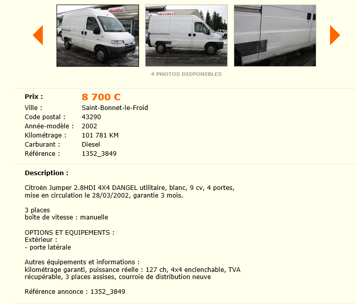Description :BOXER 350 MH 2.8l HDI Dangel 4x4