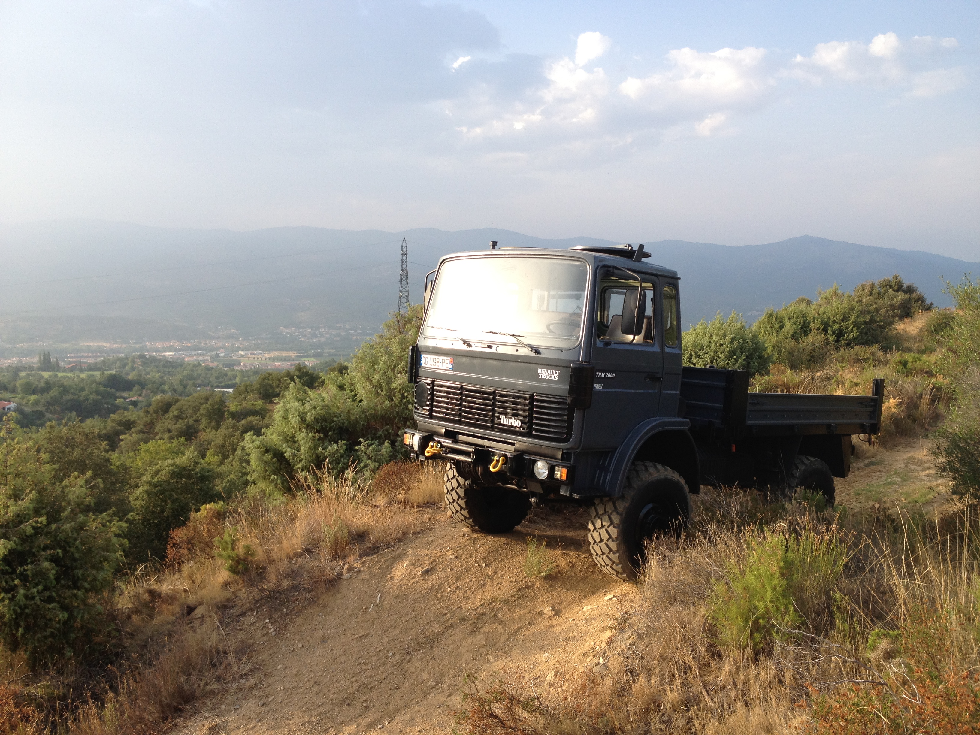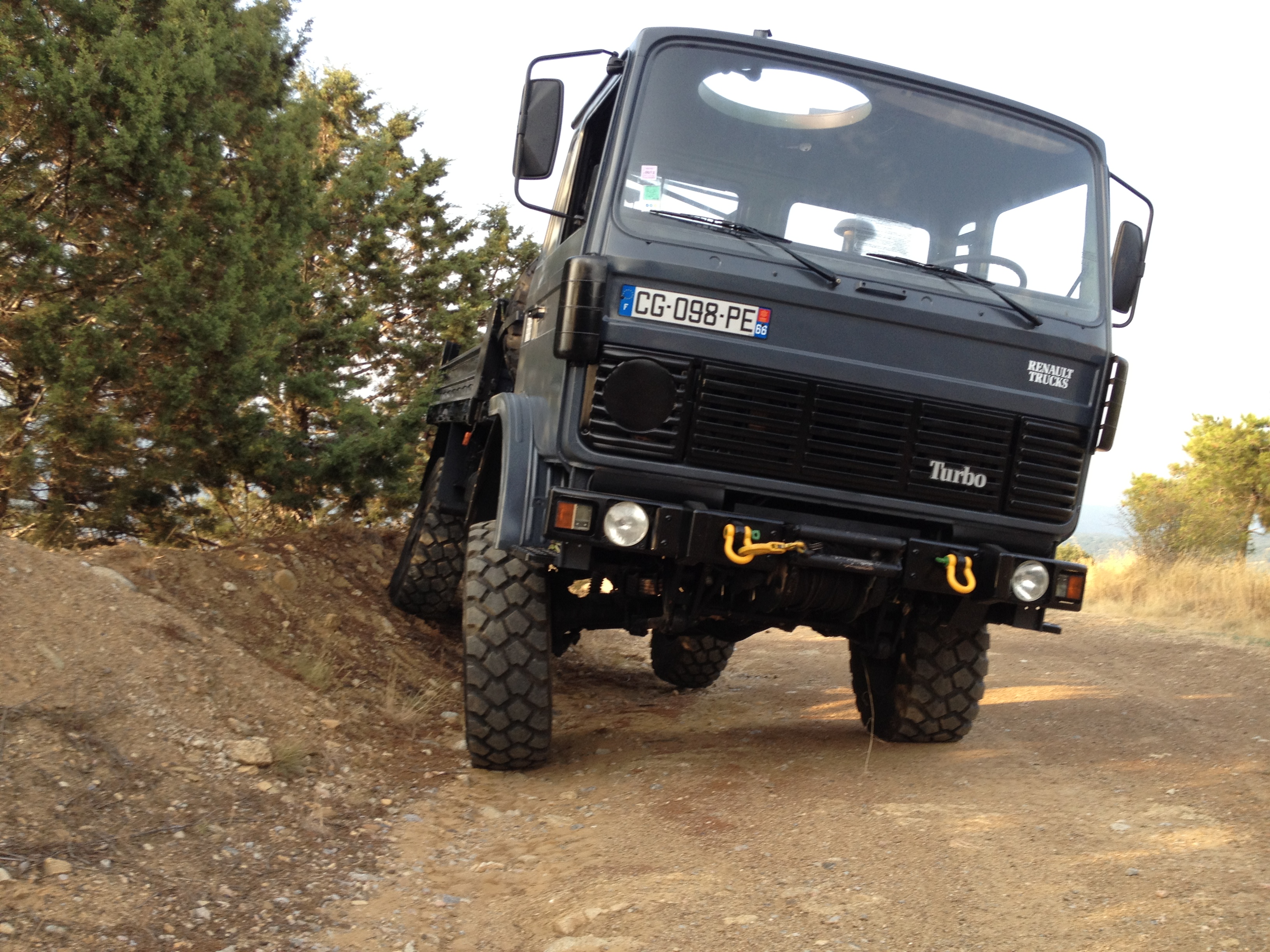 oui voila tout est dit..... s'est tape cul a vide,mais aussi en charge la suspension est très raide mais du coup il vire très a plat dans les virages, même a grand vitesse et le comportement routier est très sein.....en franchissement s'est clair q'avec des 12.5r20 et 4t950 avec un shelter il est très a l'aise....la aussi les lames de ressort un peut dure limite le débattement surtout a vide.....