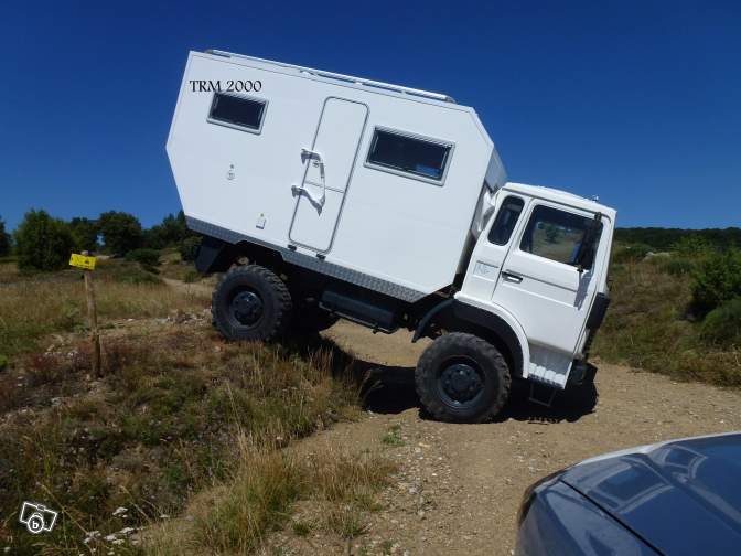 je viens de regarder ton lien traban sur le camion de nono le pirate j'aime bien moi son 2000 avec son gros shelter, mais moi je ne pourrai pas le mettre comme lui j'ai tout le bordel hydraulique derriére la cabine pour le treuil et je je ne compte pas l'enlever trop pratique ce treuil, je vais peut- être m'orienter vers la caisse frigo sinon la caravane en dernier recours genre digue 4 places comme sur la photo je trouve que ce sont celle qui se rapproche le plus d'une cellule un peu carré sans passage de roue une fois peinte comme le camion ça peut peut-être le faire :wink: