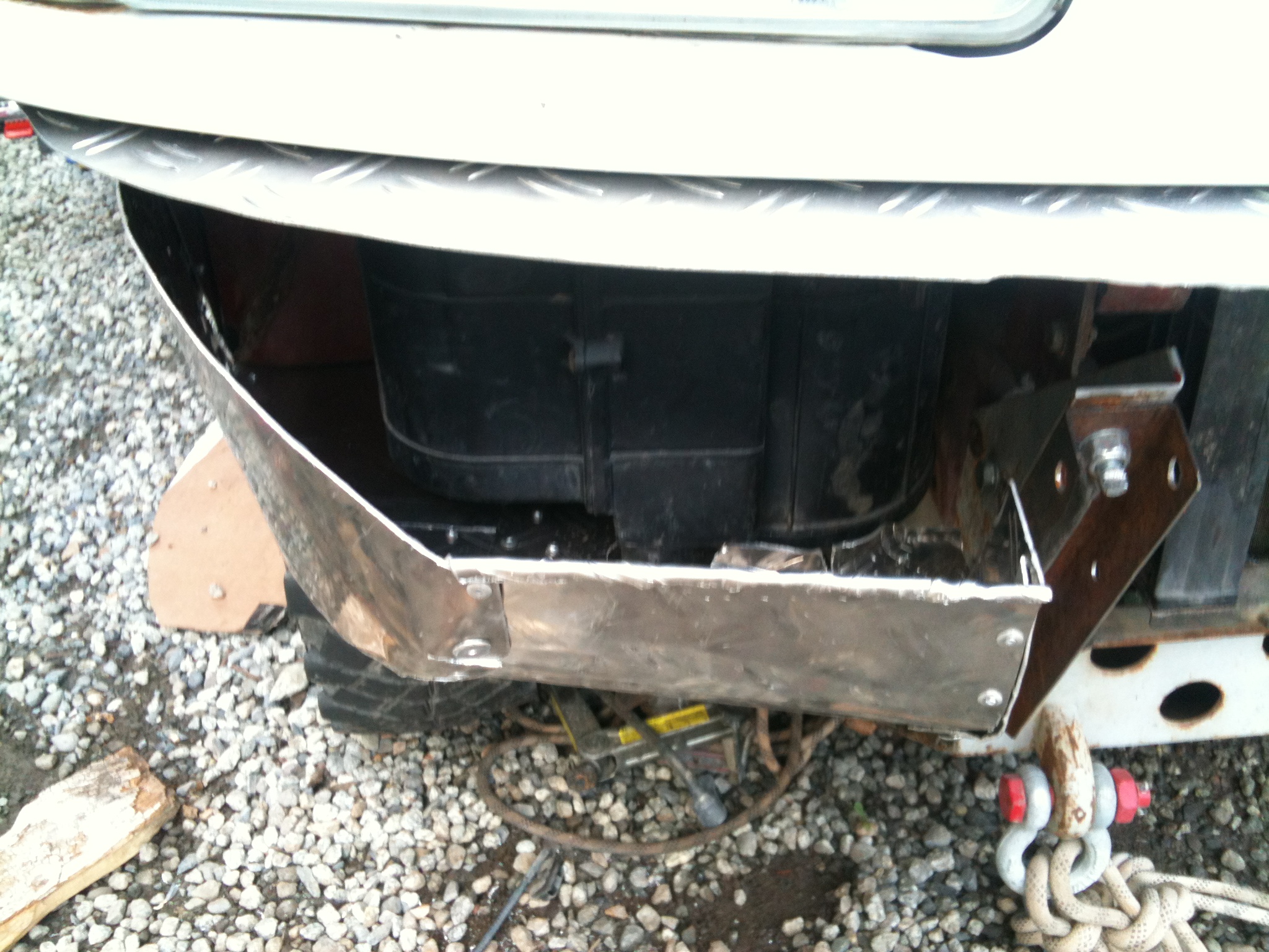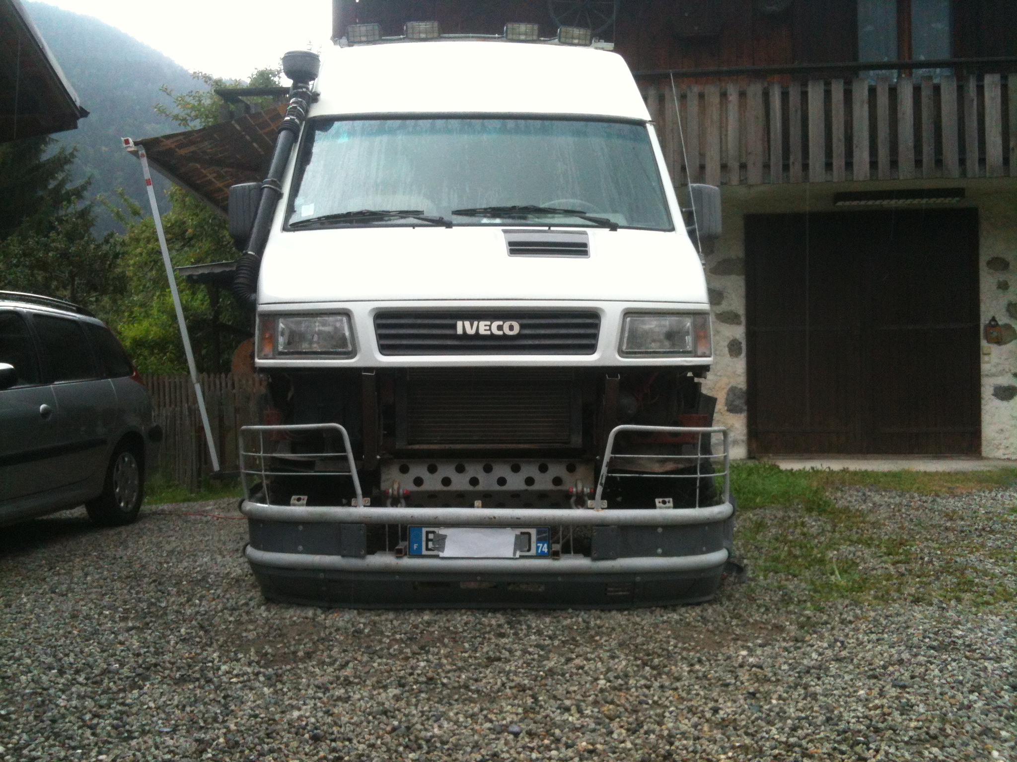 Ayant remarqué que de beaux espaces restaient inutilisés dans le compartiment moteur de mon Iveco, j'ai entrepris de les optimisés moyennant un accès depuis le pare-choc...