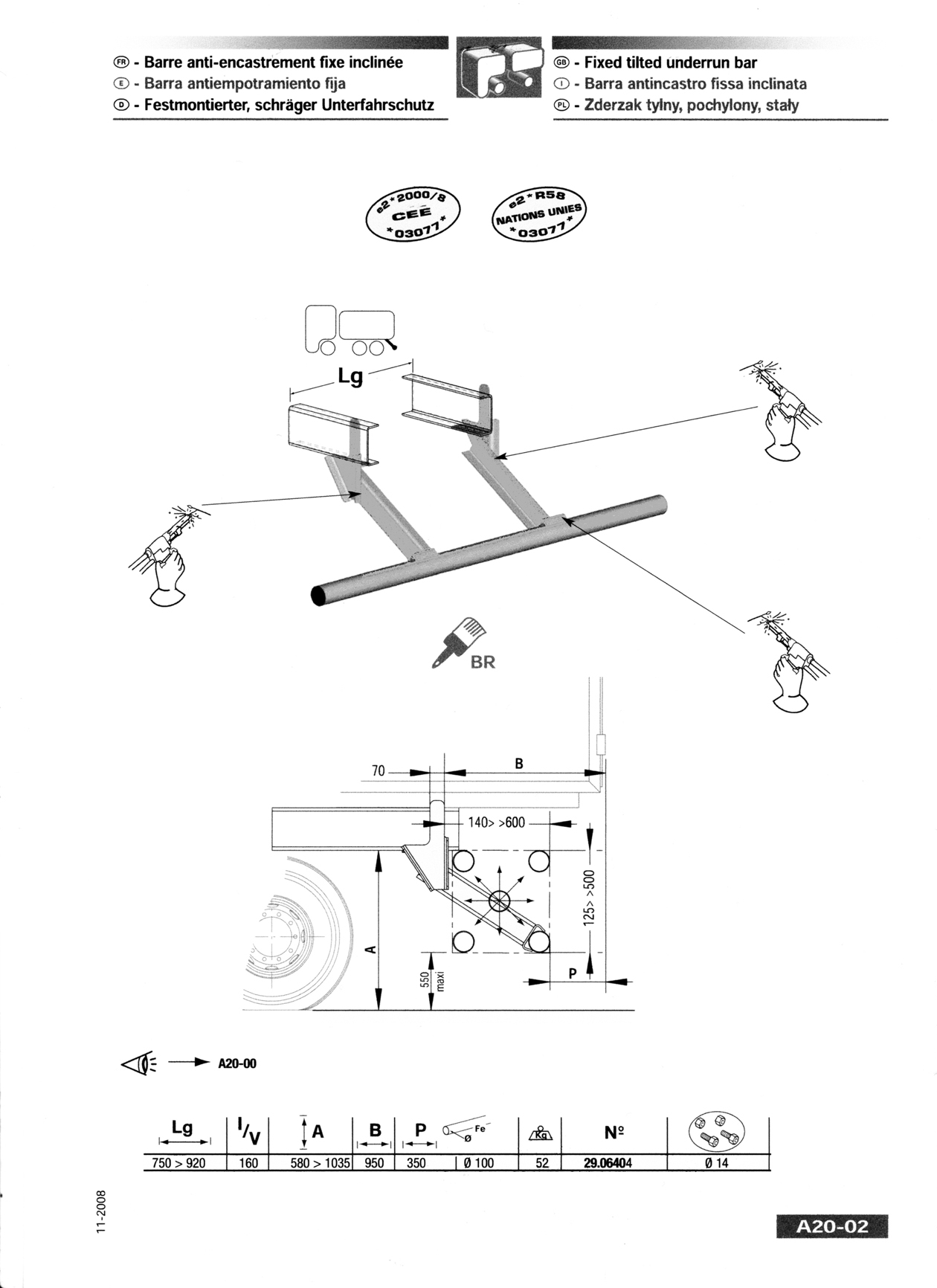 Depuis le 1er mars 2010, on applique la nouvelle directive 2006/20 qui concerne surtout les bae équipées de hayons élévateurs, mais ne modifie pas les dimensions autorisées contrairement à ce qui avait été envisagé lors des discussions à la commission européenne en 2008, notamment la cote P (protection maximale actuellement de 350 mm maxi) et la cote H (hauteur maximale actuellement de 550 mm maxi).