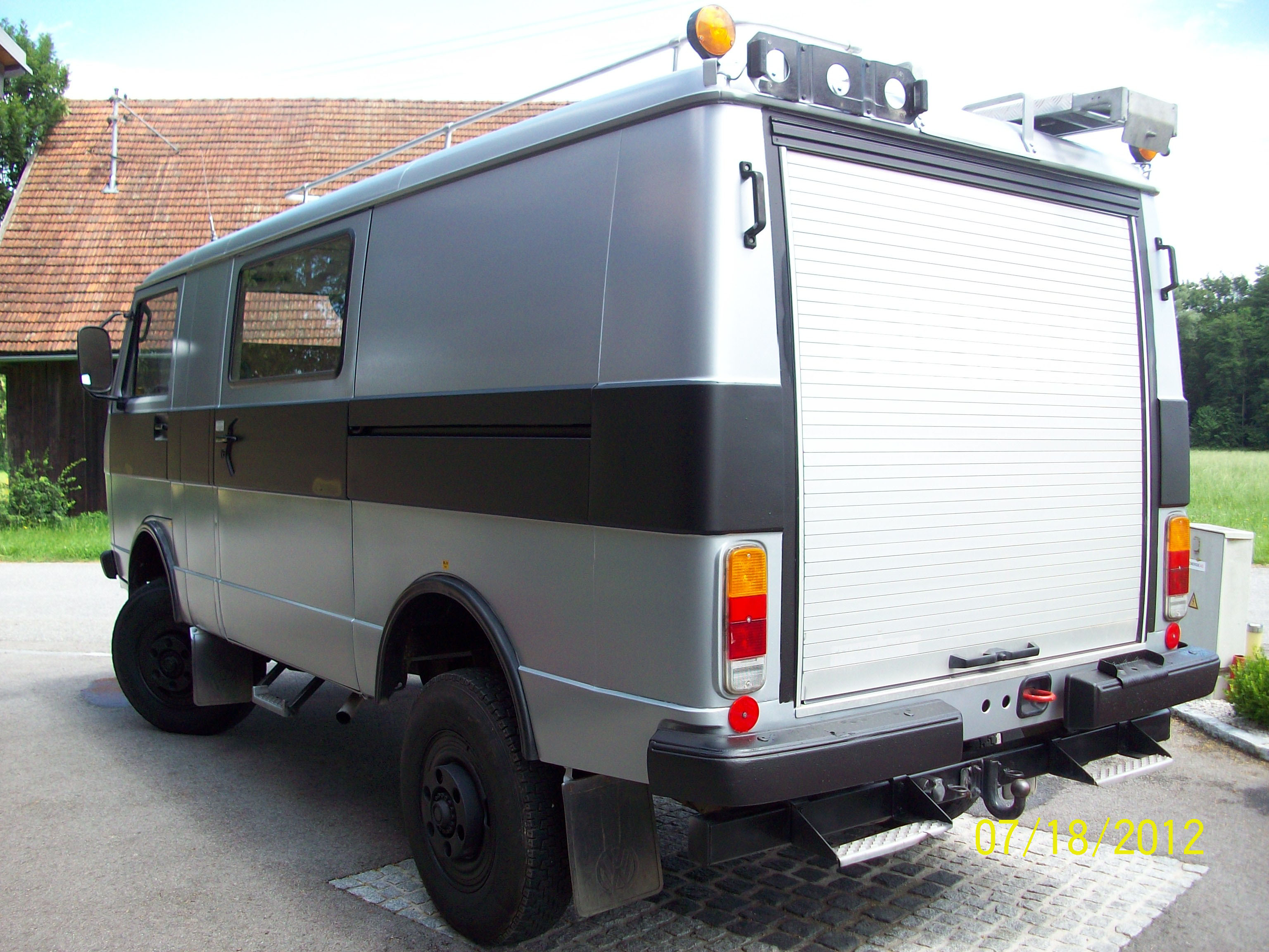 Bref, voilà l'engin : modèle LT 40 (poids total 4'400kg), année 1987, moteur 6cyl. essence (version injection, pas trop gourmand en comparaison du Pinz), 27'900 km repeint par 'ancien proprio qui n'a jamais pu l'immatriculer en Autriche en raison de la législation en vigueur dans ce pays et qui n'autorise pas la remise en circulation d'un véhicule pompier sans faire disparaître tous les éléments de son ancienne affectation. Trop long et compliqué pour son proprio qui décide finalement de s'en débarrasser.
