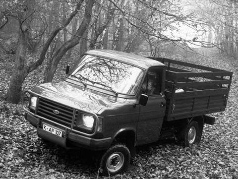 Ford Transit Mk 2 (1986) 4x4. this vehicle, I think was supplied new to the Electric Companies to enable their workers to inspect pylons, etc in the middle of fields. it was a. originally fitted with a petrol engine but now has a 2.5l diesel and 5 speed box, its only disadvantage is that it makes the steering a bit heavy, could do with power steering bits from another Transit, and b. it was originally a Minibus but the windows have been taken out and repanelled there is a cab divider fitted, the conversion was done by 'County' (tractors) and its fitted with 205-16 tyres (Iveco wheels, I think) it runs fine, just like a normal transit in 2 WD, the front axle has free wheeling hubs, there is a bit of rust in the body mainly on the bottom of the rear doors, but nothing structial, will MOT for the asking price