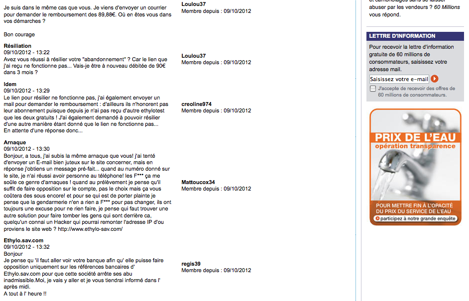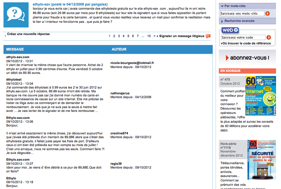 J'ai fait des recherches sur le Net et j'ai vu que nous étions des centaines à s'être fait piégé (60 millions de consommateurs).