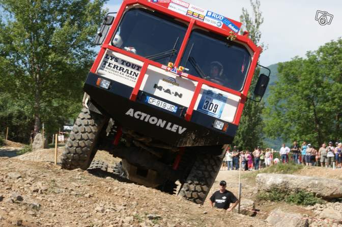 MAN KAT 4x4 , préparé arceau extérieur complet , 3 sieges bacquets + harnais 4 points , protection avant pac choc et ski en une seul pièce en 10 mm , blindage protection de boite et arbres de transmission en 10mm , blindage protection réservoir en 10mmm. échappement libre en inox , pneux michelin xzl 1600 + 1 roue de secours, éclairage ok , klaxon trompes , prévoir réparation carrosserie suite à un tonneau , batteries neuves , moteur V8 DEUTZ , boite de vitesse ZF avec convertisseur , suspensions ressorts , véhicule idéal pour le BRESLAU , aucun travaux mécaniques à prévoir