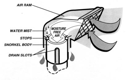 Il faut dire que même une tête de snorkel standard, si montée dans le bon sens (c'est à dire ouverture dans le sens de marche) et pas à l'envers comme on le voit trop souvent, est équipée de petits trous pour évacuer la poussière en utilisation dynamique (le flux d'air "centrifugeant" la saleté dans la courbe) et non pas l'aspiration par effet cyclonique. Moins efficace, certes.