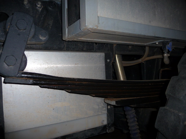 Soit enlever 2 lames sur les 7 présentes. A l'avant pour 5,5 T d'origine, il y a 5 lames. Je ne modifie rien à l'avant car en pleine charge maxi je peux arriver à 5,2 T. La suspension est ferme à l'avant mais sans plus.