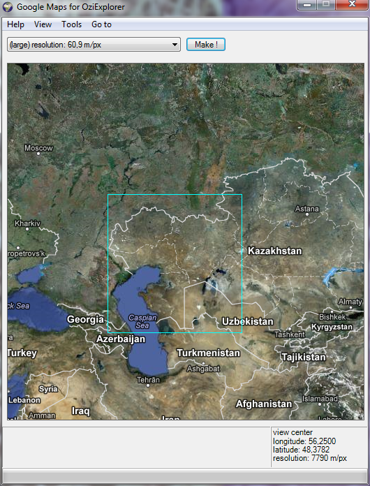 j'ai crée une carte sat hybride représentant le 1/3 du Kazakhstan environ , et en forte définition (15 km sur 80mm d'écran )