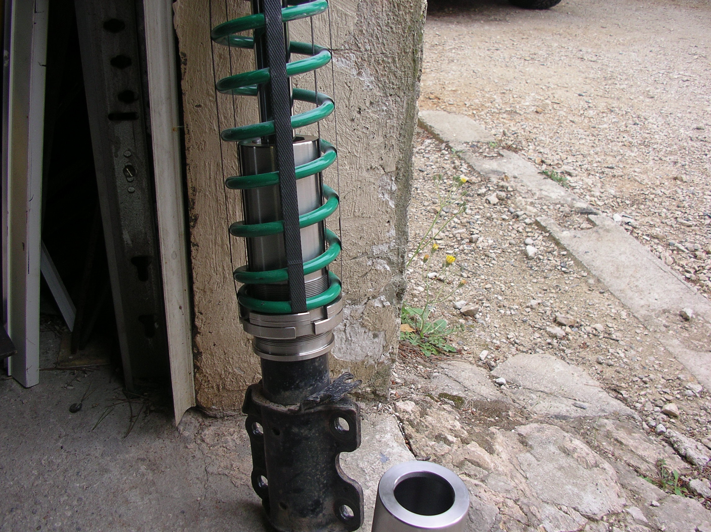 La pièce fabriquée vient donc coiffer le corps de l'amortisseur (comme le montage prévu d'origine mais sans le réglage)