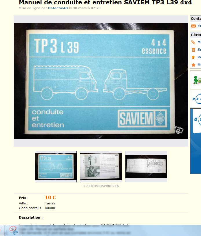 Produit par Saviem (Renault) de 1969 à 1983, le TP3 est un camion militaire tout-terrain 4x4 conçu pour l’armée française. Compact et robuste, il offre d’excellentes capacités de franchissement grâce à sa transmission 4x4 et son moteur diesel MAN. Utilisé pour le transport de troupes, le matériel et diverses missions, il existe en plusieurs configurations (plateau, ambulance, commandement). Cette rubrique est dédiée aux passionnés et propriétaires pour échanger sur l’entretien, la restauration et l’utilisation du TP3.