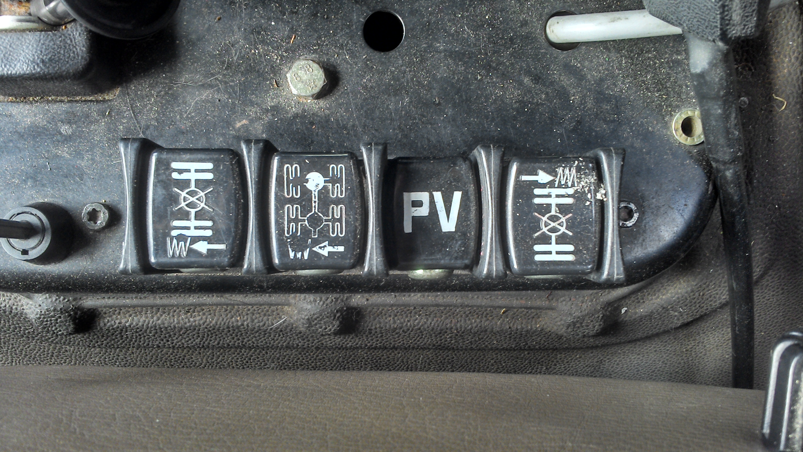 chez moi il ya 2 interrupteurs/témoin lumineux identique, et je croyais que c’était blocage pont AR et AV, comme tes interrupteurs photo n°1 les 2 et 3 depuis la gauche, et en faite 1 est pour le blocage du pont AR et l'autre le passage en 4x4,
