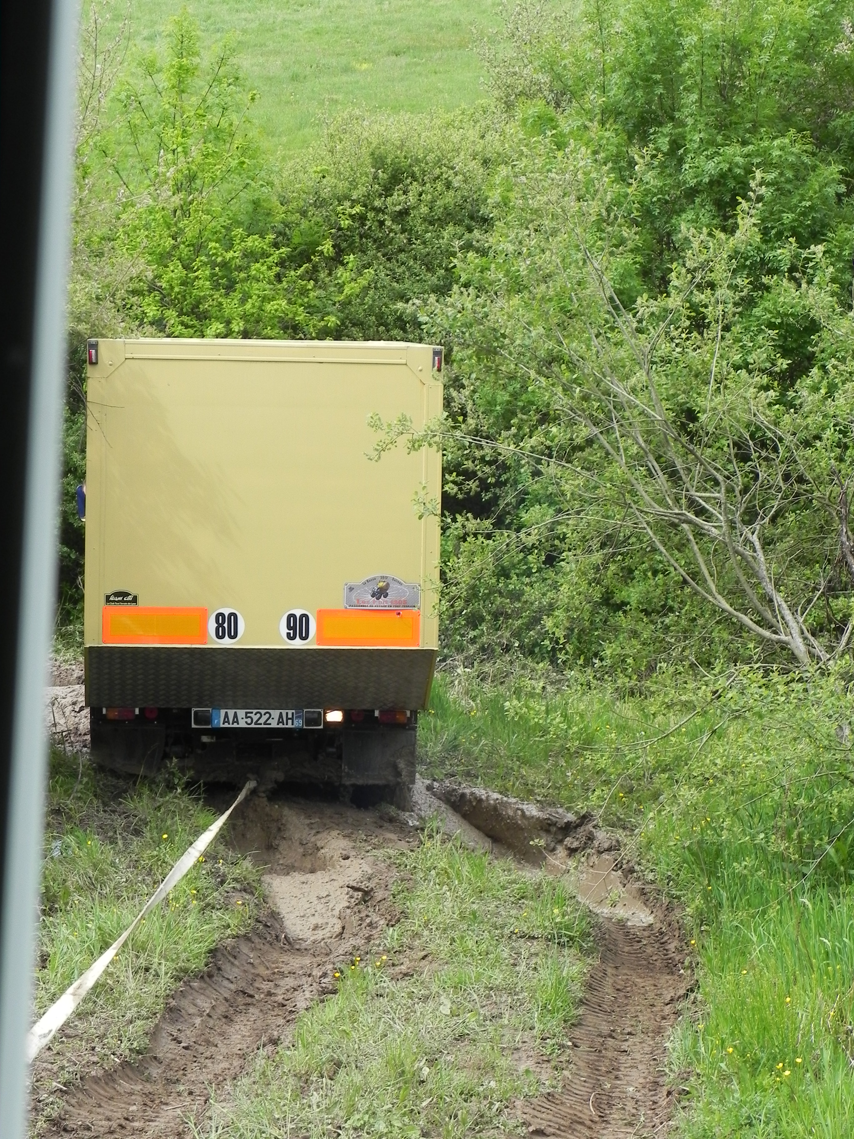 J'ai vu l'iveco de traban dans la même situation au même endroit sauf qu'il a réussi a lever les deux roues arrière lui