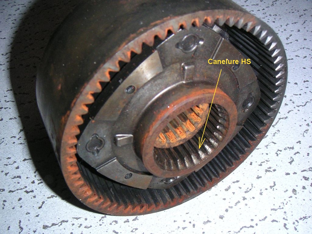 En plus en 2003, le train planétaire (Réducteur) et son pignon de crabotage ont été changé. C'est l'ancien réducteur que j'ai pris en photo, et c'est le seul défaut visible.