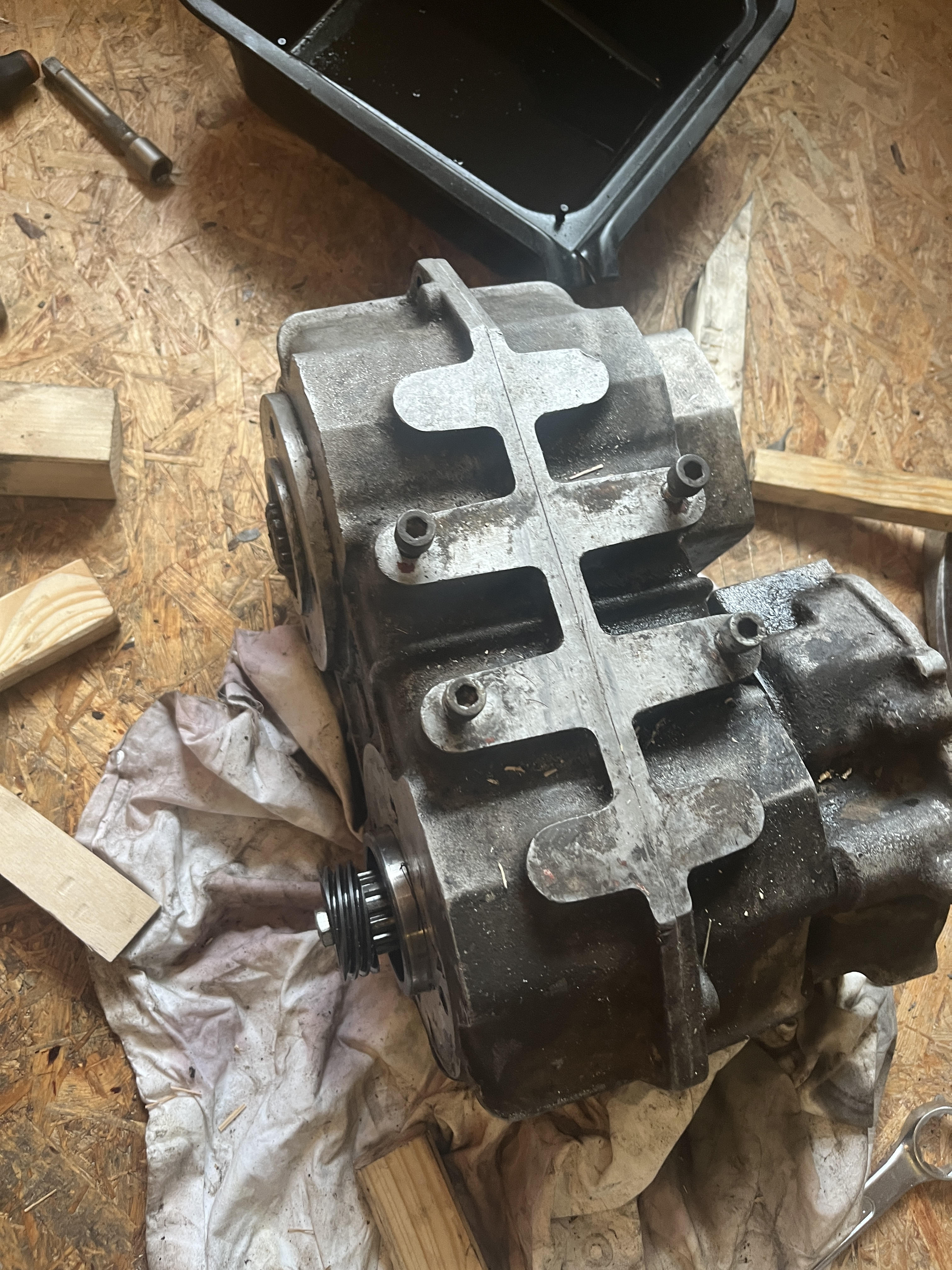J'avais démonté ma boîte de transfert de rechange et rassemblé les pièces pour une révision :