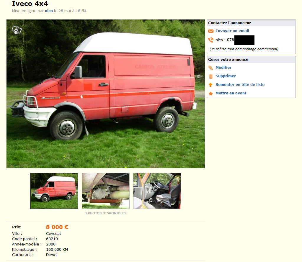 Jusque là tout va bien , seulement mon client se rends compte que l'aménagement ne sera pas aussi facile que prévu et il manque de patience , puis entre temps , ( bizarrement c'est toujours comme ça , plusieurs iveco sont apparues sur LBC ) donc il souhaites en acheter un déjà aménagé .