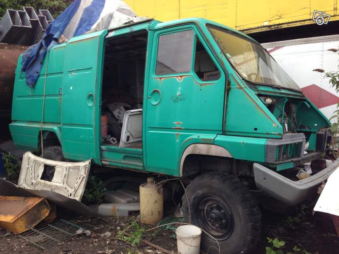 Vends Renault Trucks B90/B110 RVI version tout terrain pour pièces car je n'ai pas la carte grise, le client a disparu depuis 20 ans Ce véhicule était souvent utilisé par l'armée, la gendarmerie, les pompiers, la SNCF ou EDF. Il ne roule pas mais le moteur Sofim est tout neuf. Pont avant Hurth et non Ponticelli comme sur la version tous chemins, pont arrière avec blocage de différentiel, boite de transfert le tout est quasi neuf. Si ça vous intéresse, n'hésitez pas à me contacter 0682660390.