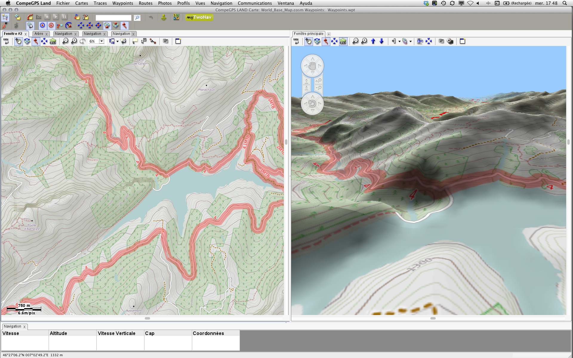 Ce serait comme avoir deux affichages (deux écrans?) avec sa position centrée sur chaque écran et défilement automatique de chaque carte, chacune à une échelle distincte! (c'est très utilisé en aviation par ex. avec des cartes identiques mais affichant des infos différentes... TMA, fréquences, niveaux de vol etc...)