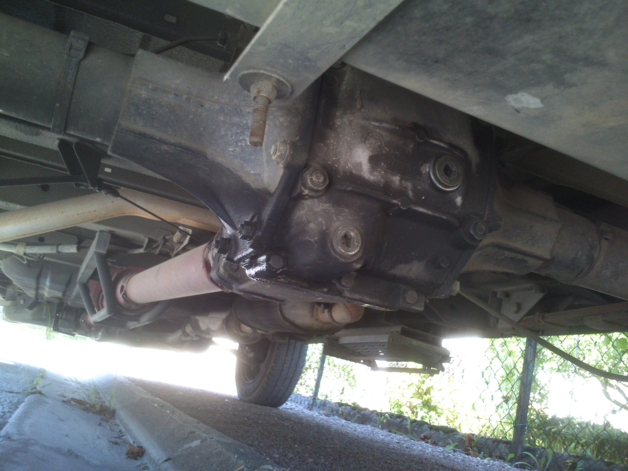 Comme je suis un brèle en mécanique, j'ai fait quelques photos du dessous pour avoir vos avis. Il y a un petite fuite d'huile au pont arrière manifestement.